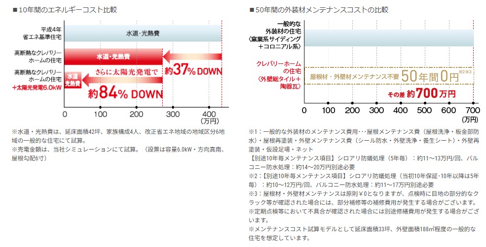 一般的な住宅と比較すると、クレバリーホームのメンテナンス費用は圧倒的に低いことがわかるでしょう。
