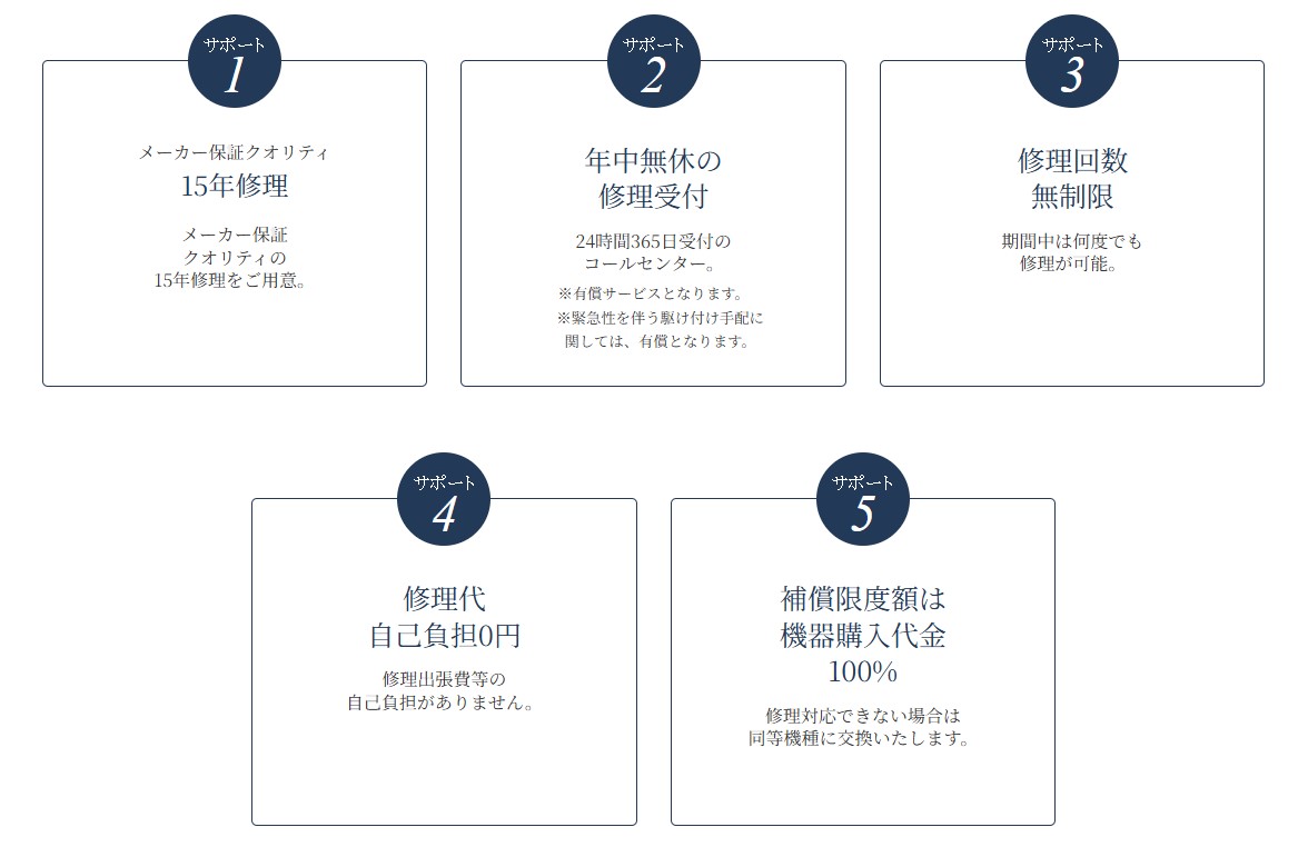 期間中は自己負担0円で出張修理が可能で、保証限度額は機器購入代金100%となっています。